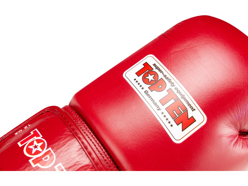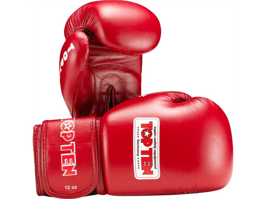 Boxerské rukavice World Boxing musia spĺňať prísne požiadavky, ktoré rukavice TOP TEN "Competition" ľahko spĺňajú. Majú mäkký poťah vyrobený zo 100 % pravej kože a sú k dispozícii v súťažných farbách červenej alebo modrej. Ďalším dôležitým bezpečnostným prvkom je pevný palec, ktorý sa dokonale prispôsobí celkovému tvaru rukavíc. S hmotnosťou 10 alebo 12 uncí sú rukavice TOP TEN "Competition" najlepšou voľbou pre vaše výkony v súťažnej aréne.