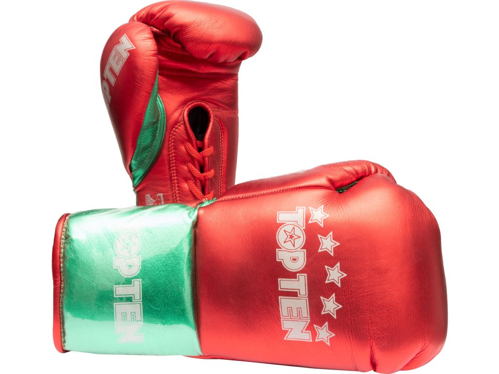 Professionals get their money’s worth with the “Pro MX” boxing gloves. The high-quality genuine leather gloves with lacing are made in the Mexican style. Specifically, you can expect a slim glove shape with an extremely tight fit. The high-quality IMF/horsehair padding gives the “Pro MX” competition gloves with a weight of 10 oz an excellent weight / cushioning ratio with full power transmission. The natural breathability of the genuine leather boxing gloves is surprisingly strong. In addition, a cooling inner lining made of moisture-wicking polyester ensures high wearing comfort. The best processing techniques make the “Pro MX” from TOP TEN a first-class companion in the professional martial arts sector.