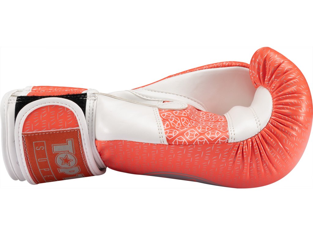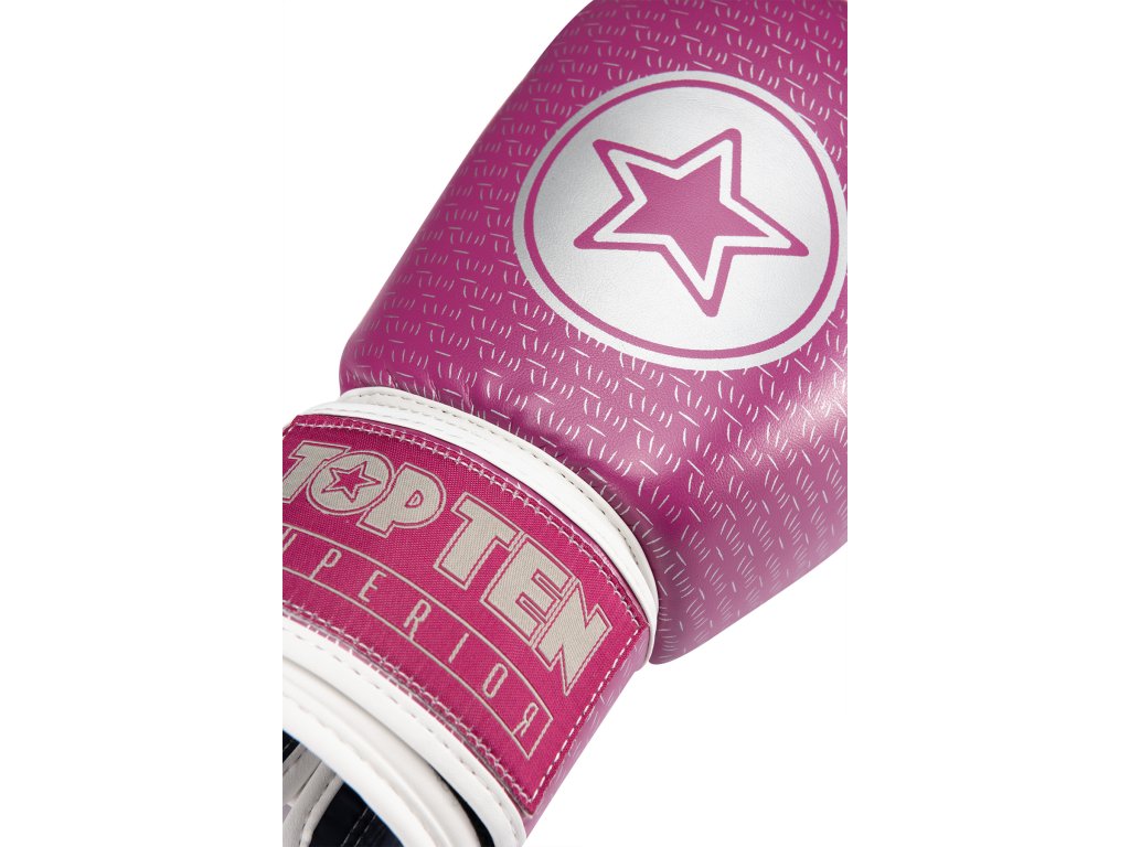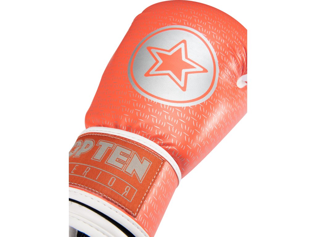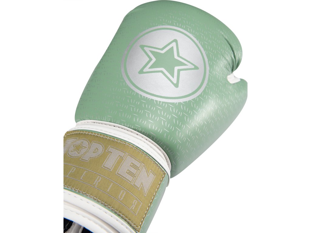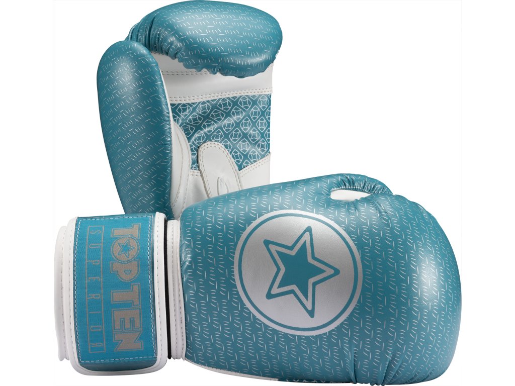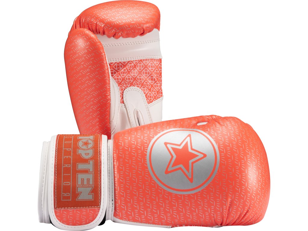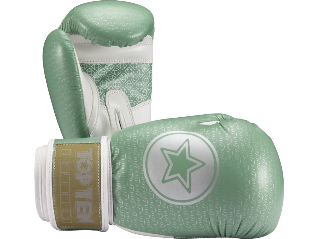 Boxerské rukavice TOP TEN "Superior" sú vyrobené zo syntetickej kože a zaujmú svojou odolnosťou a jedinečnou farebnou koncepciou. Úchopová línia na vnútornej strane zlepšuje úchop a uľahčuje zatínanie päste pre optimálny prenos sily. Po tréningu sa polyesterová vnútorná podšívka postará o rýchle schnutie. Okrem štandardného tvaru si môžete vybrať svoje "Superior" od TOP TEN aj ako SlimCut.