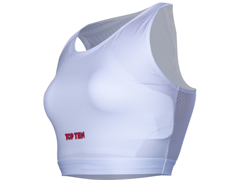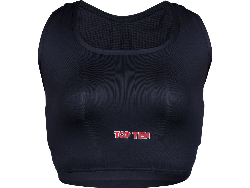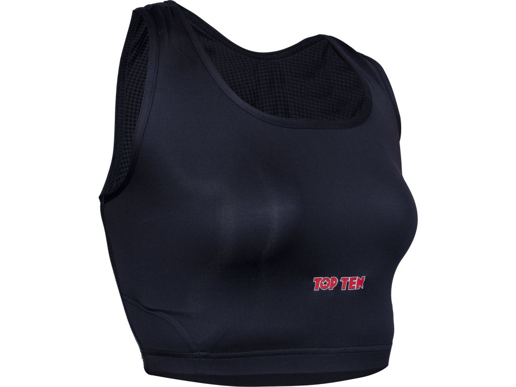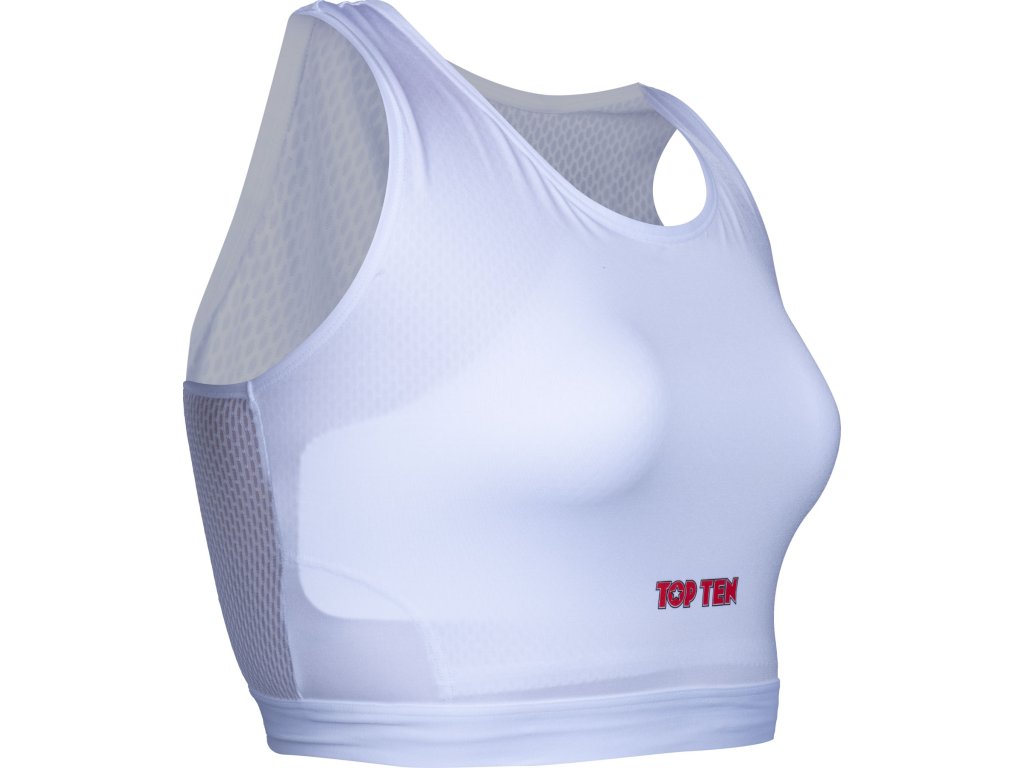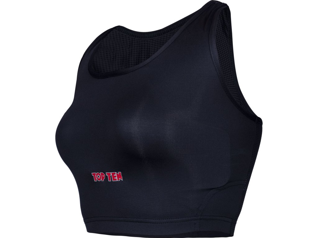 TOP TEN zaručuje najvyššiu úroveň bezpečnosti s dámskym chráničom hrudníka "Maxi" vrátane pevných plastových vložiek. Táto kombinácia tkaniny a škrupiny chrániča spôsobuje, že srdcia majstrov bojových umení bijú rýchlejšie, pretože pohodlie a bezpečnosť nie sú zanedbané. Vďaka dlhšiemu strihu chránič hrudníka "Maxi" pre ženy pevne obopína celú hornú časť tela. Vďaka priedušnému a elastickému materiálu sa stále cítite úplne pohodlne a pokojne môžete svoje telo vypotiť. Vďaka nosnému systému má chránič TOP TEN "Maxi" obrovskú oporu, takže účinne zabraňuje poškodeniu postoja a tkanív.