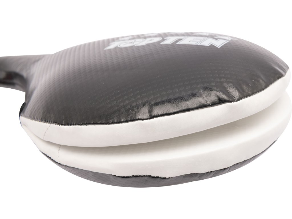Znovu sa naštartujte a dajte do toho všetko, čo máte, na "trénerskej rakete" od TOP TEN. Toto partnerské cvičenie nie je o sile a sile. Namiesto toho si vyžaduje vytrvalosť, rýchlosť a trénované oko, aby ste bezpečne zasiahli plochu palice. Známy dizajn spoločnosti TOP TEN charakterizuje úderovú plochu a zaručuje "Coach Racket" najlepšiu kvalitu a kvalitné spracovanie. Vďaka ergonomickej úchopovej zóne a prídavnému popruhu sa "Coach Racket" vždy bezpečne drží v ruke a dá sa rýchlo meniť jej poloha. Drápka na ruku má odolný poťah zo syntetickej kože na dlhodobé používanie pri spoločenských športoch.