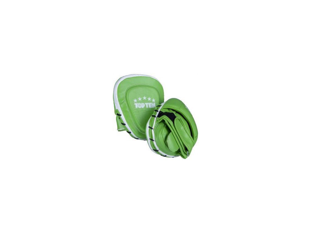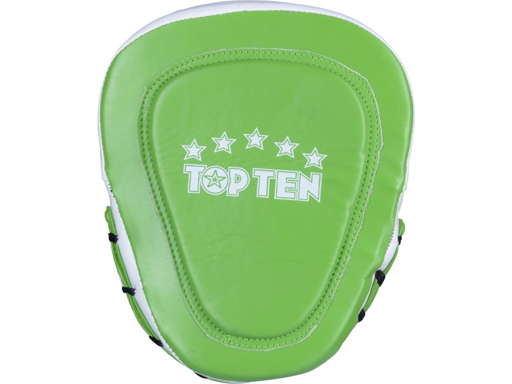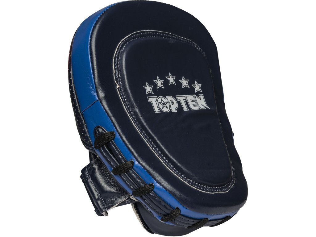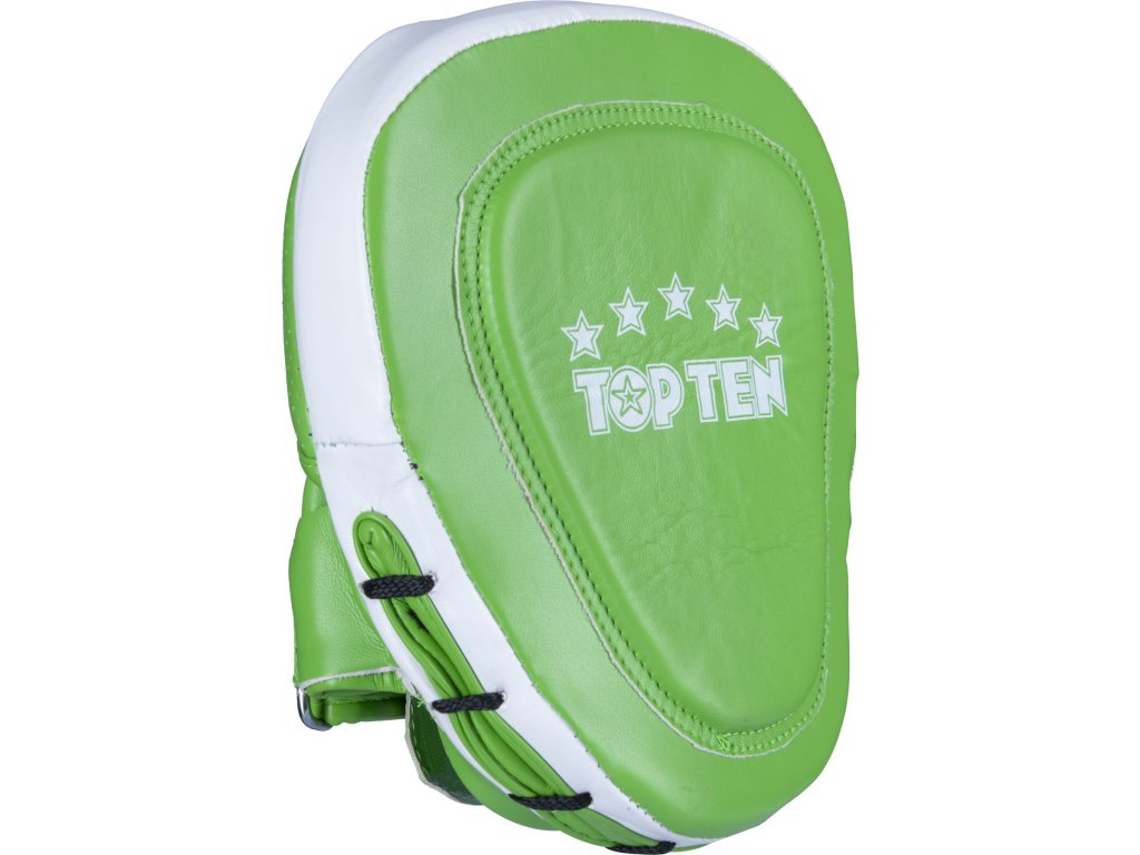 Ručné pazúry "INTRO" od spoločnosti TOP TEN zaručujú skvelý štart. S nimi môžete očakávať prvotriednu prípravu na súťaž a maximálnu bezpečnosť. Rukavice "INTRO" Focus Mitts sa skladajú z dvojitého bezpečného poťahu. Zmes kože a syntetickej kože zabezpečuje potrebnú priľnavosť a robí rukavicu Focus Mitts mimoriadne odolnou. Penové jadro chráničov rúk "INTRO" s otvorenými pórmi rozdeľuje energiu na celú plochu 20 cm x 17 cm so zvýšenou zónou zásahu, ktorá chráni držiteľa. Presné vedenie rúk a nastaviteľné zapínanie na háčik a slučku na individuálnu reguláciu veľkosti zaručujú pevné uchytenie "INTRO", aby sa dali rýchlo viesť v bloku a protiútoku.