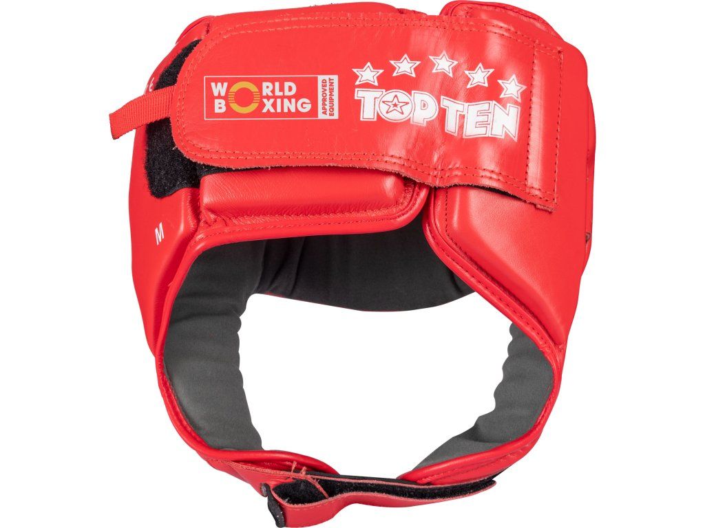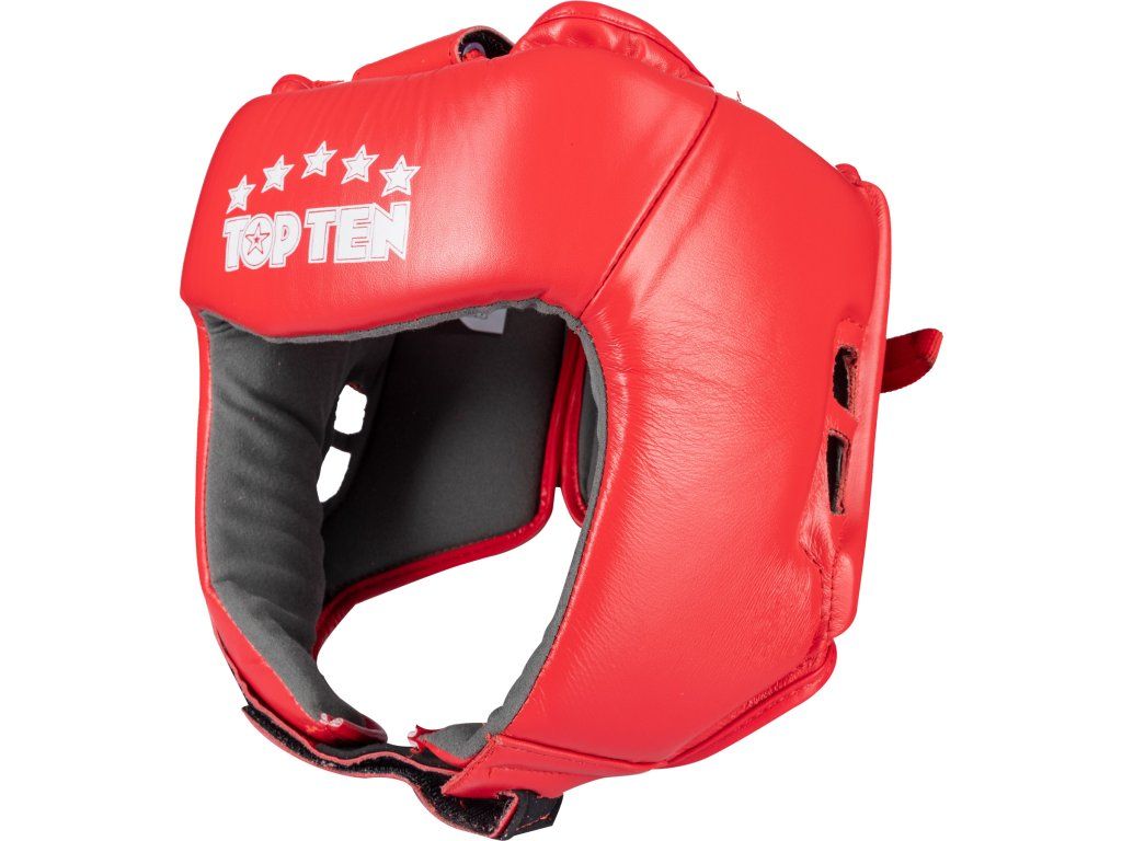 Výrobky TOP TEN sú synonymom bezpečnosti v ringu a vyznačujú sa súladom s predpismi a praktickým testovaním pre maximálny výkon v olympijskom boxe. Chránič hlavy "Competition" z pravej kože od spoločnosti TOP TEN, ktorý nesie označenie schválený svetovým boxom, ponúka optimálnu ochranu proti nárazovým silám vďaka vysokoúčinnej penovej výplni EVA a priedušným bunkám. Vysokokvalitná pravá koža a funkčná vnútorná podšívka udržujú vašu hlavu pod chráničom hlavy "Competition" v chlade a suchu.