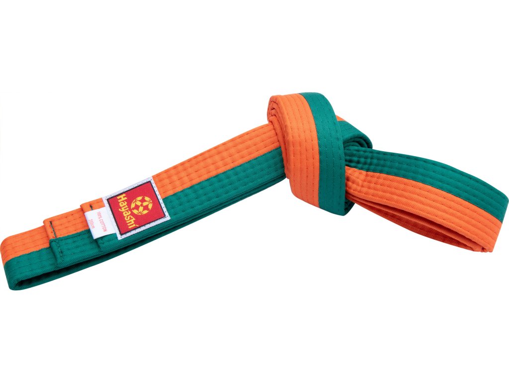 Získajte etapové víťazstvo s dvojfarebnými budo opaskami Hayashi. Sú úspešným motivačným prostriedkom až do prechodu na ďalší vyšší stupeň výcviku (stupeň kjú). Keď na opasku predvediete svoj aktuálny stupeň, zažiari aj cieľová farba ďalšieho plnofarebného opasku. Najmä pri tréningu detí a mládeže dvojfarebné bavlnené opasky karate vypĺňajú dlhé obdobie do ďalšej skúšky. Vďaka šírke 4 cm sa dajú rýchlo a pevne uviazať. Vďaka viacnásobne prešívanému bavlnenému materiálu dvojfarebné opasky budo ľahko odolávajú záťaži pri tréningu karate.