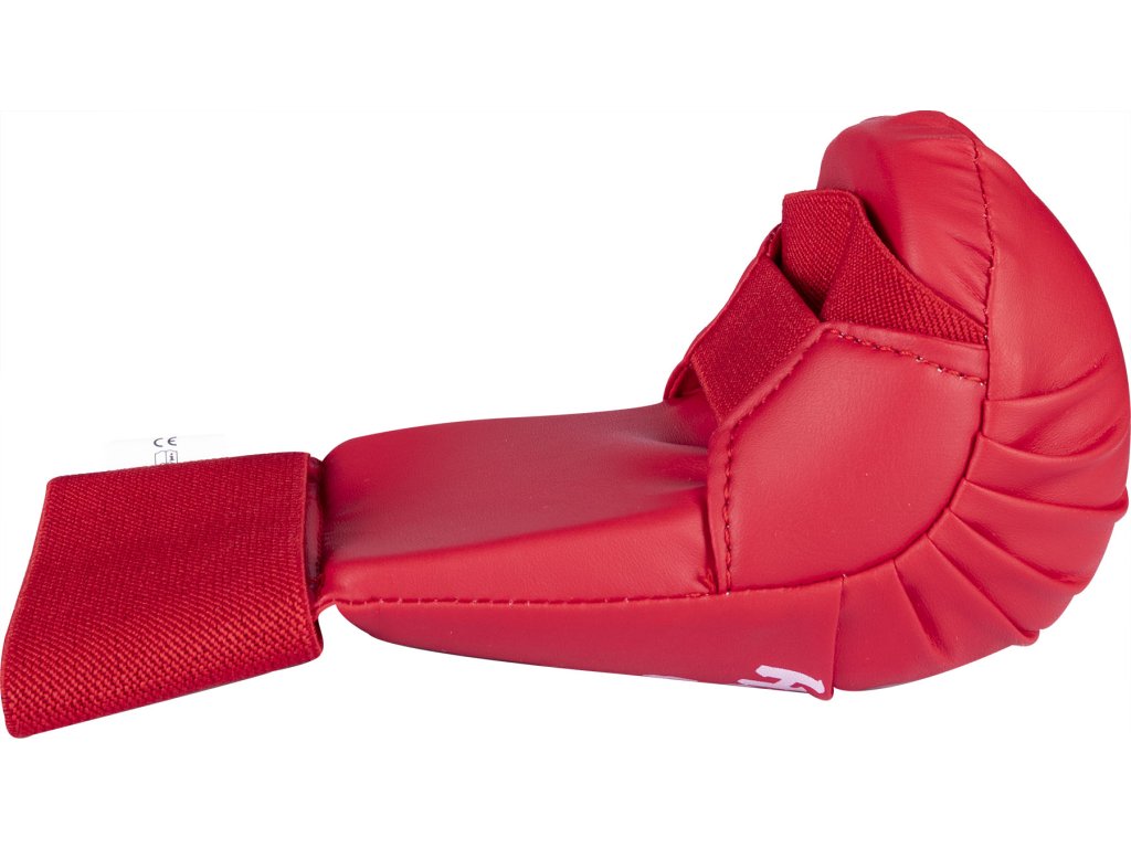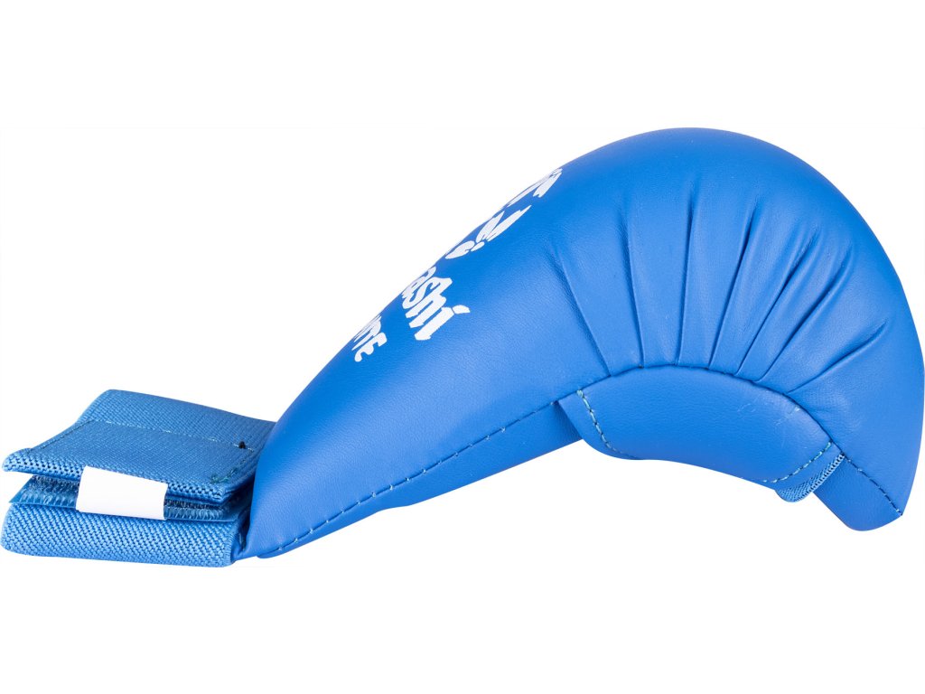 Na každom tréningu sa zdokonaľujete v technikách kumite karate. Tréningové rukavice "Tsuki" sú dokonale prispôsobené každodenným výzvam a poskytujú potrebnú bezpečnosť pre tréning bez zranení. Robustný poťah zo syntetickej kože obopína predtvarované penové jadro, takže vaše ruky sú dobre chránené a vedené v ideálnej úderovej polohe. Na hornej časti "Tsuki" sú pripevnené elastické pásiky, ktoré zabezpečujú dobré uchopenie prstov. Model je k dispozícii v typických farbách červená a modrá. Vďaka silnému zapínaniu na háčik a slučku rukavice Hayashi "Tsuki" pevne držia na rukách.