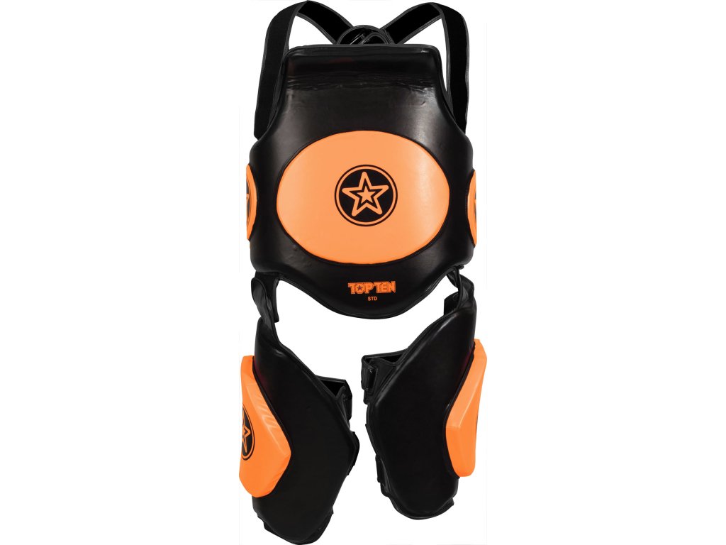 Dobre zabalené, začnete nové kolo tréningu bojových umení v "Bodyguard Xtra". Brucho, obličky a stehná sú dokonale chránené pred kopancami a údermi pod až 7 cm hrubým ochranným polstrovaním. Flexibilný systém zapínania s individuálnymi možnosťami nastavenia umožňuje prispôsobiť "Bodyguard Xtra" príslušnému nositeľovi. Chrániče stehien možno oddeliť od brušného štítu v závislosti od tréningového zamerania. S tréningovou súpravou "Bodyguard Xtra" tak zostanete flexibilní a každý tréning si môžete nanovo navrhnúť.