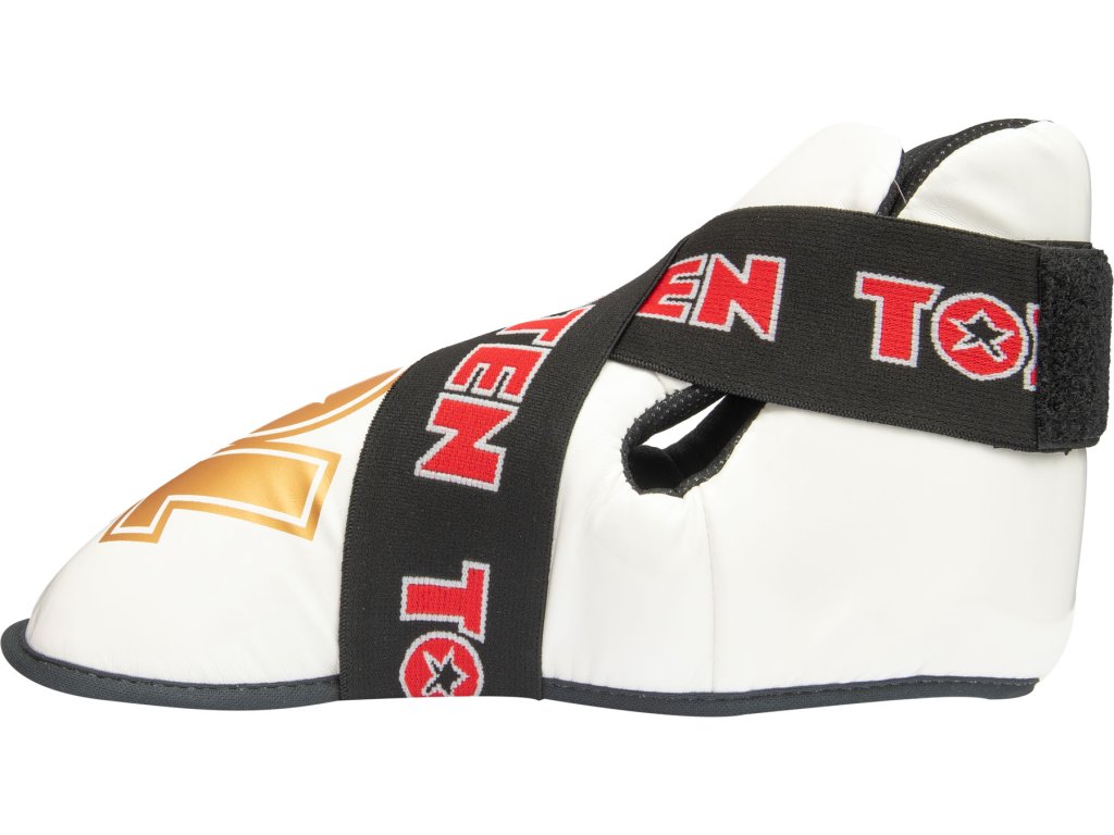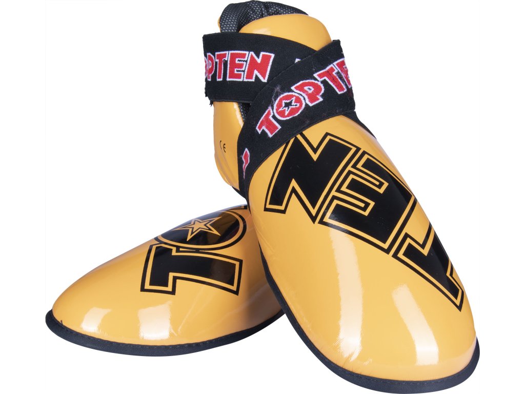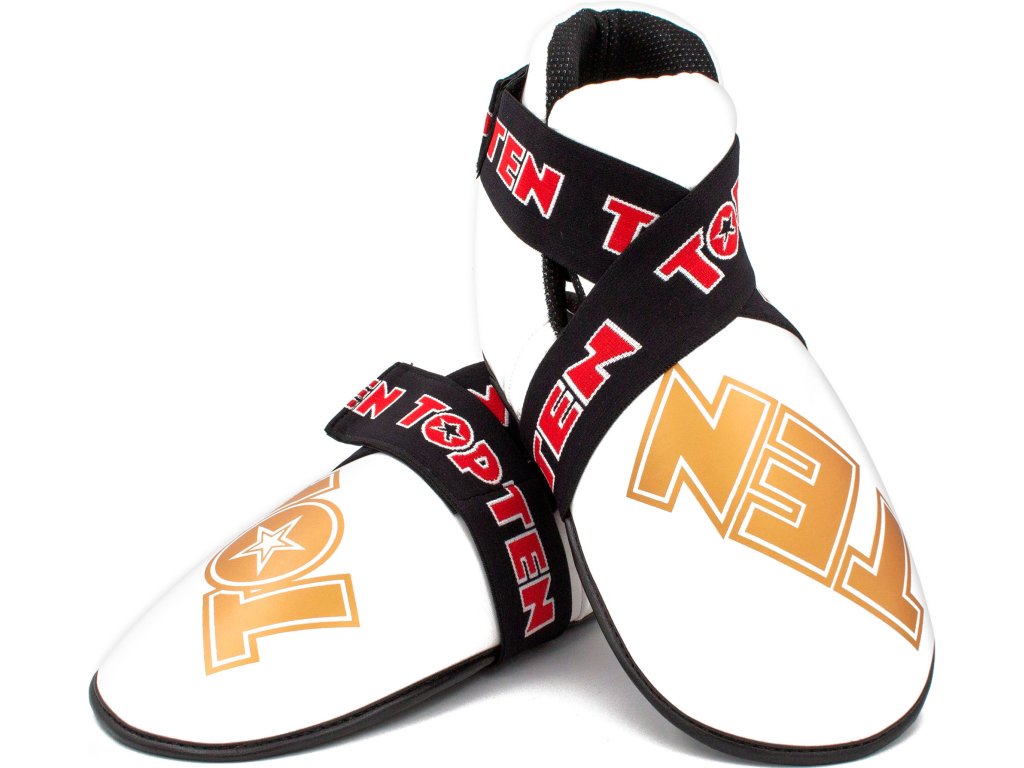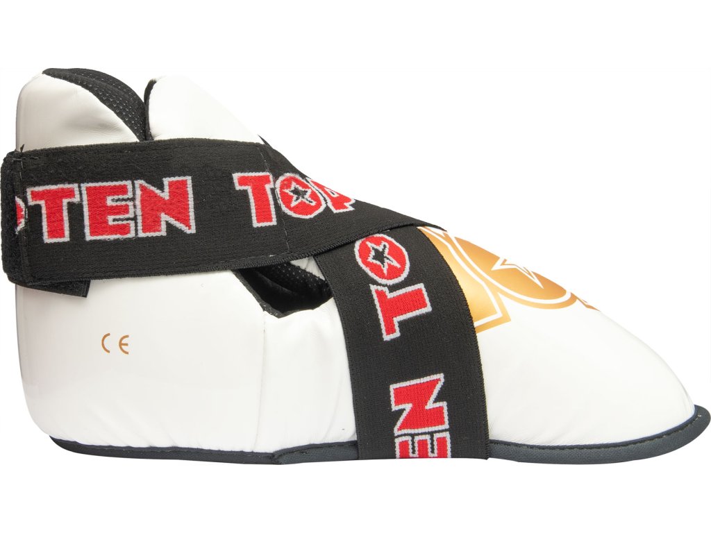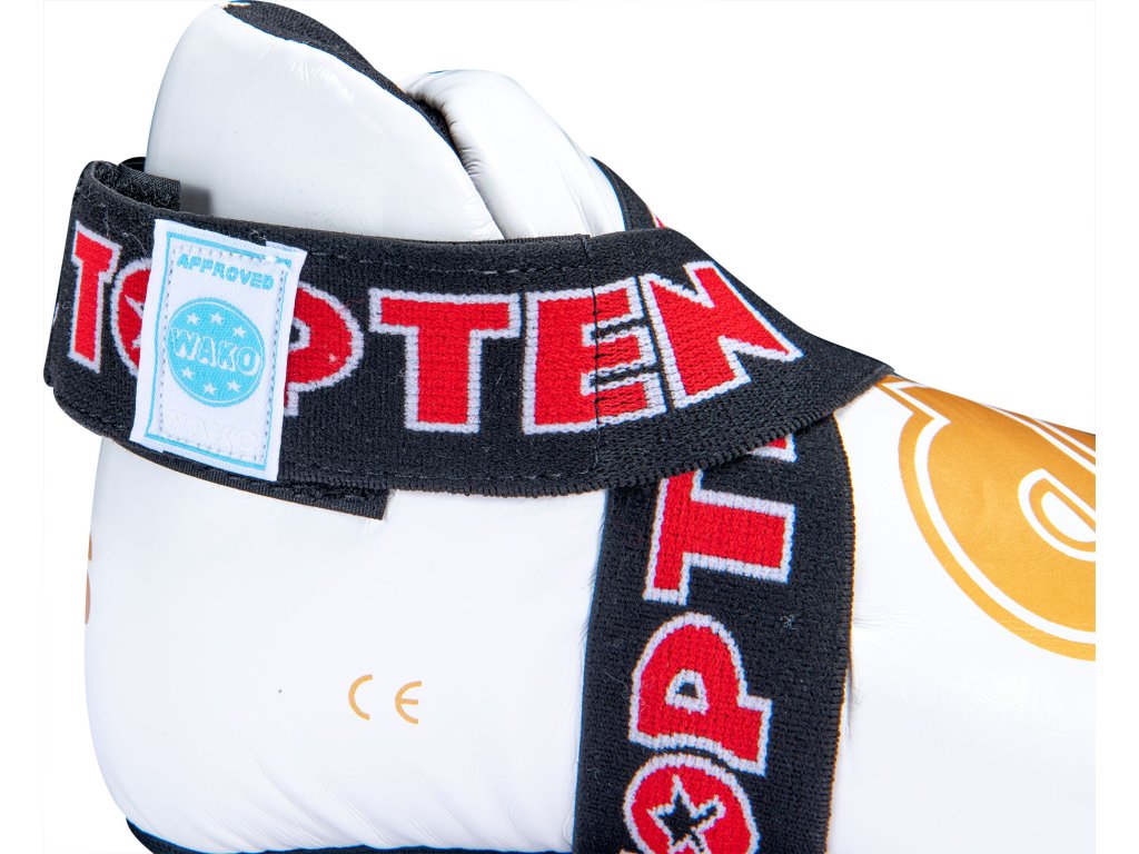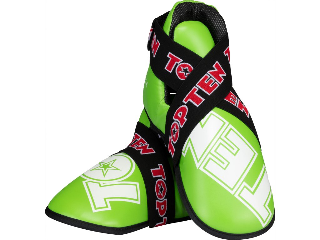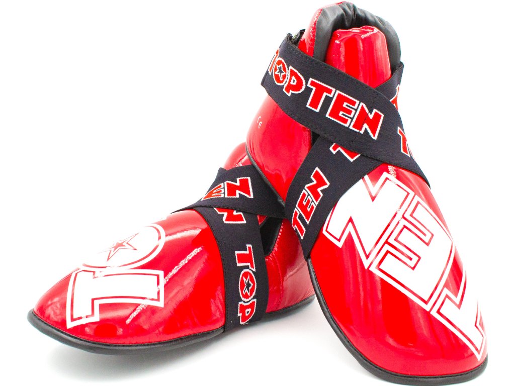 Nič nie je pre vaše nohy lepšie ako chrániče nôh TOP TEN "SuperLight". Chrániče pripravené na súťaže zaujmú tvarovaným polstrovaním z PPS peny, ktorá má vysoké tlmiace vlastnosti. Robustné puzdro z imitácie kože v dizajne TOP TEN nielen dobre vyzerá, ale je aj neuveriteľne odolné. Chrániče "SuperLight" dokonale sedia na nohe vďaka vymeniteľnému remienku s háčikom a pútkam na prsty. Môžete sa teda úplne spoľahnúť na bezpečnostný výkon svojho ochranného vybavenia TOP TEN.