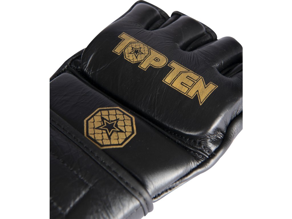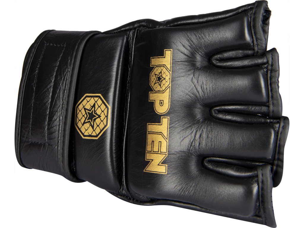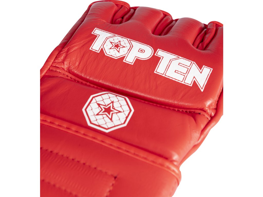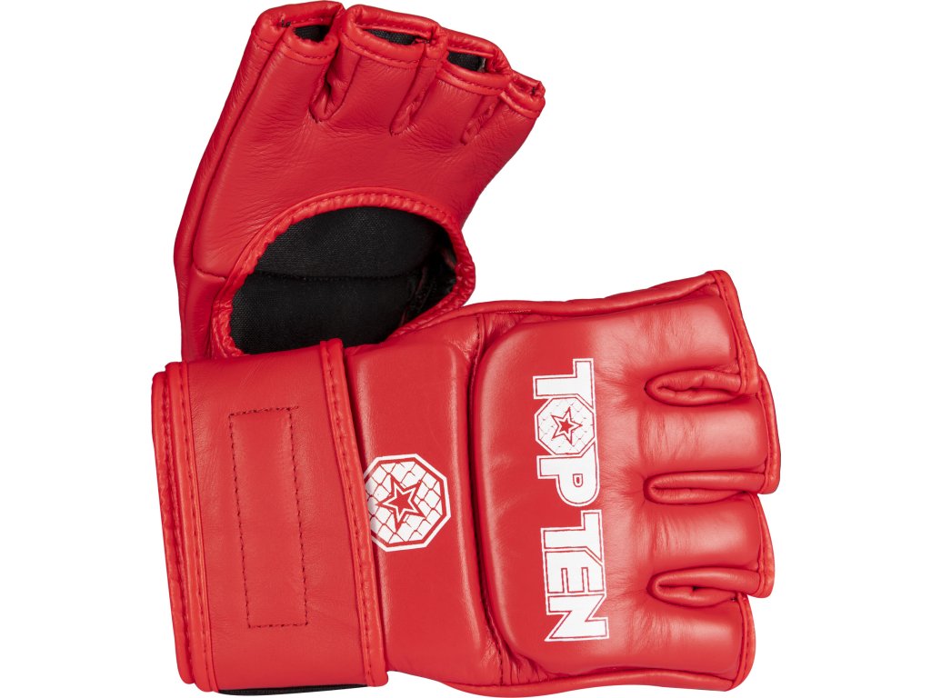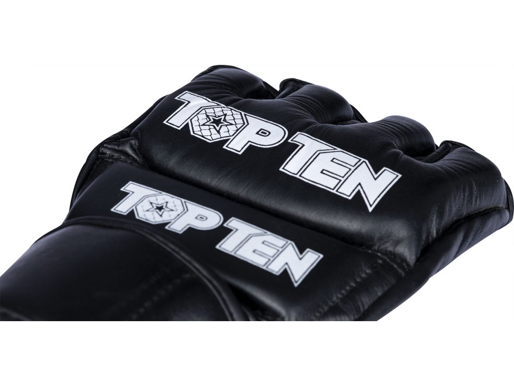 Vezmite svoj úspech v MMA do vlastných rúk a získajte súťažné rukavice TOP TEN MMA Pro "Competitor". Strih rukavíc "Competitor" je špeciálne prispôsobený potrebám zmiešaných bojových umení. Majú super mäkký úchop a sú prirodzene priedušné ako rukavice z pravej kože. Oblasti dlane a prstov sú otvorené. Pevný úchop je preto v rukaviciach "Competitor" zaručený. Delené polstrovanie na ruke zaisťuje bezpečnosť pre vás aj vášho súpera. Pevná manžeta s háčikom a slučkou ponúka dobrý úchop a zároveň stabilizuje citlivú oblasť zápästia.