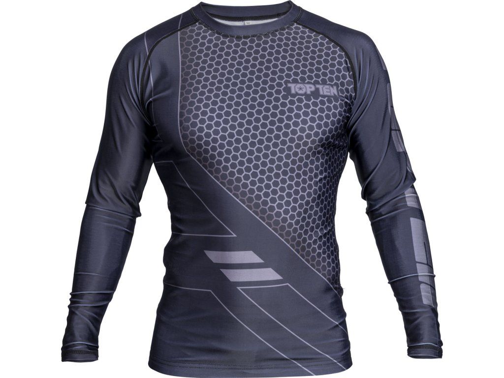 V chrániči proti vyrážkam s dlhým rukávom "COMBat" od spoločnosti TOP TEN sa rýchlo dostanete do formy. Priliehavé tričko z priedušných funkčných vlákien žiari výraznou kompresnou podporou. Mierny tlak umožňuje svalom pracovať efektívnejšie, a tak pomáha predchádzať prístupu napr. cez naťahovanie. Vďaka pogumovanému pásu športové tričko perfektne sedí na tele a nemôže sa skĺznuť ani skrútiť. Ľahké a nemačkavé tričko "COMBat" je vždy vaším spoločníkom v športovej taške a vyjadruje svoje prednosti pri silových, kondičných a voľnočasových športoch. Vďaka nápadnému dizajnu voštín a výrazným farbám je tričko s dlhým rukávom "COMBat" povinnou výbavou pre športovcov, ktorí dbajú na trendy.