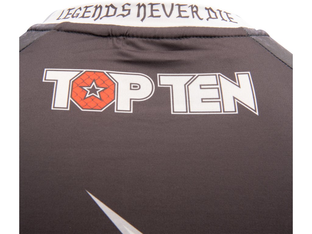 Top, ktorý vás núti chcieť viac - viac pohybu, bojových umení a zábavy. TOP TEN vám v tielku "Vikings" predstavuje jedinečný kus látky. Vďaka tomu, že je šetrný k pokožke, priedušný a optimalizovaný pre tlak, dostanete zo seba to najlepšie. Prilieha tesne k telu a optimálne zahrieva vaše svaly v tesnom priľnutí k pokožke. Okrem toho sa stimuluje svalová aktivita, čo vedie k väčšiemu prísunu kyslíka do tela, a tým k väčšej vytrvalosti. Farby a motívy sa na syntetickom materiáli vyparujú kvalitným spôsobom, čo znamená, že "Vikingovia" sa o jeho prvotriednej kvalite presvedčili na dlhý čas.