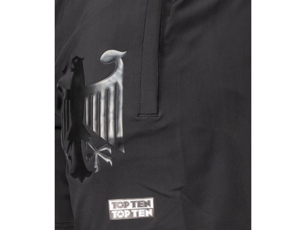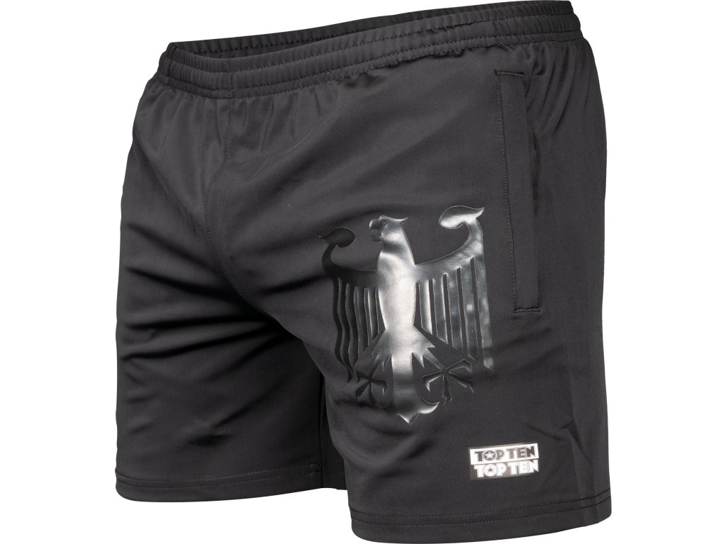 Šortky "WAKO Germany Fraction" od spoločnosti TOP TEN sú nevyhnutnou súčasťou športového, súťažného alebo pouličného štýlu. Pohodlne sedia, hodia sa ku všetkému a vyzerajú naozaj cool. Ukážte svoje vodcovské zmýšľanie s jemnou čierno-čiernou potlačou federálneho orla. Priedušný materiál vás udrží v pohode bez ohľadu na to, aké horúčavy nastanú. Vrecká na zips, elastický pás a jednoduchá údržba robia z šortiek TOP TEN ozdobu na oficiálne vystúpenia reprezentujúce vašu krajinu.